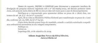 Outro fator questionado pelo impugnadores da falsa pesquisa, foi o fato dos apoiadores da candidata do PSD estarem comemorando uma suposta vitória, antes mesmo da pesquisa ser publicada, o que confirmou a criminosa e grotesca manipulação, tanto na metodologia, quanto nos resultados, com o fim de favorecer a candidata da coligação que a encomendou. Confira decisão da Justiça Eleitoral, na íntegra: